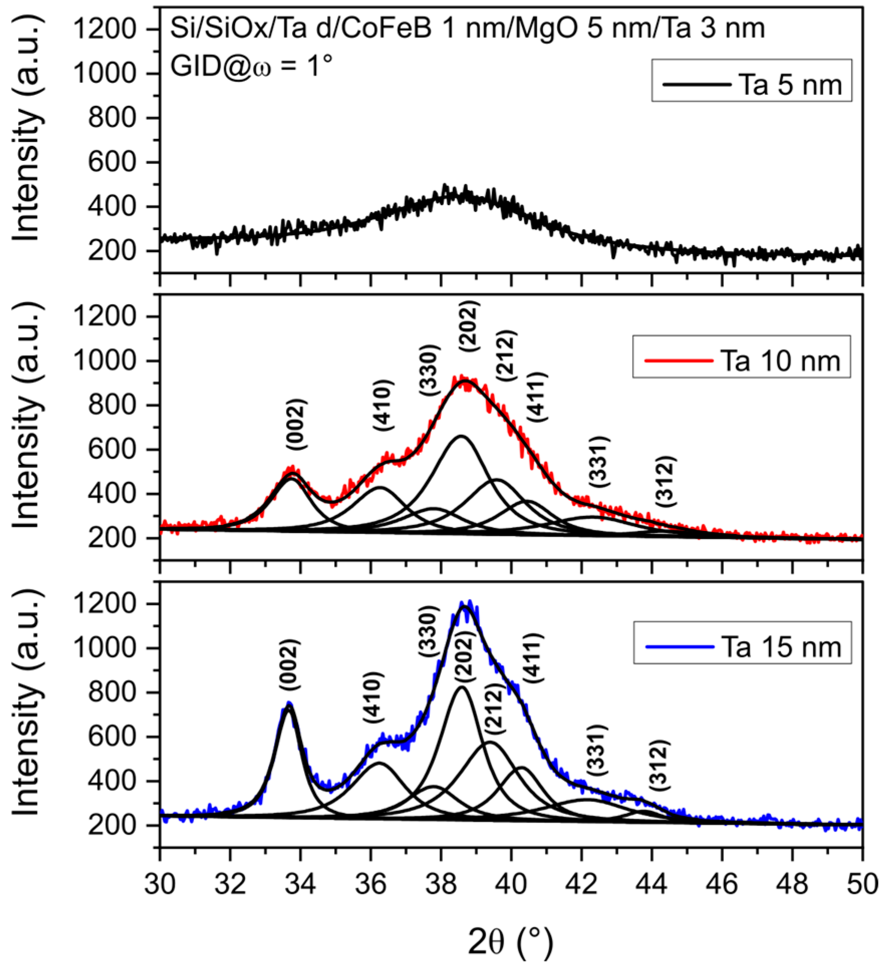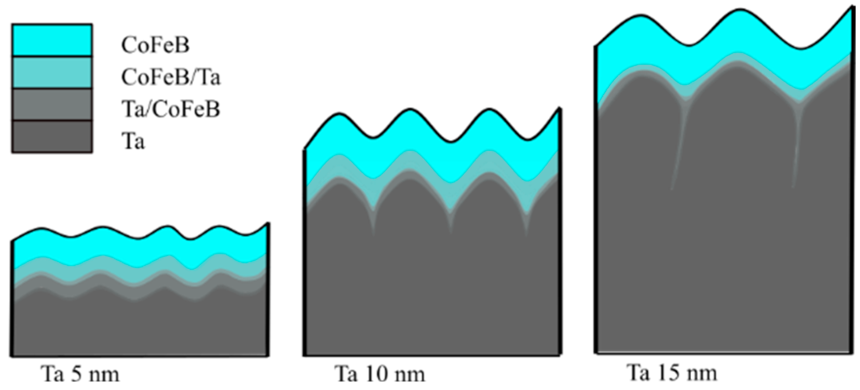 - Han, F.X.; Du, W.; Liu, M.; Su, H.; Zhang, H.; Liu, B.; Meng, H.; Tang, X. Effects of Ta and Pt/Ta seed layer on the thermal stability of CoFeB/MgO perpendicular magnetic anisotropy film. J. Alloys Compd. 2022, 906, 164298. [Google Scholar] [CrossRef]