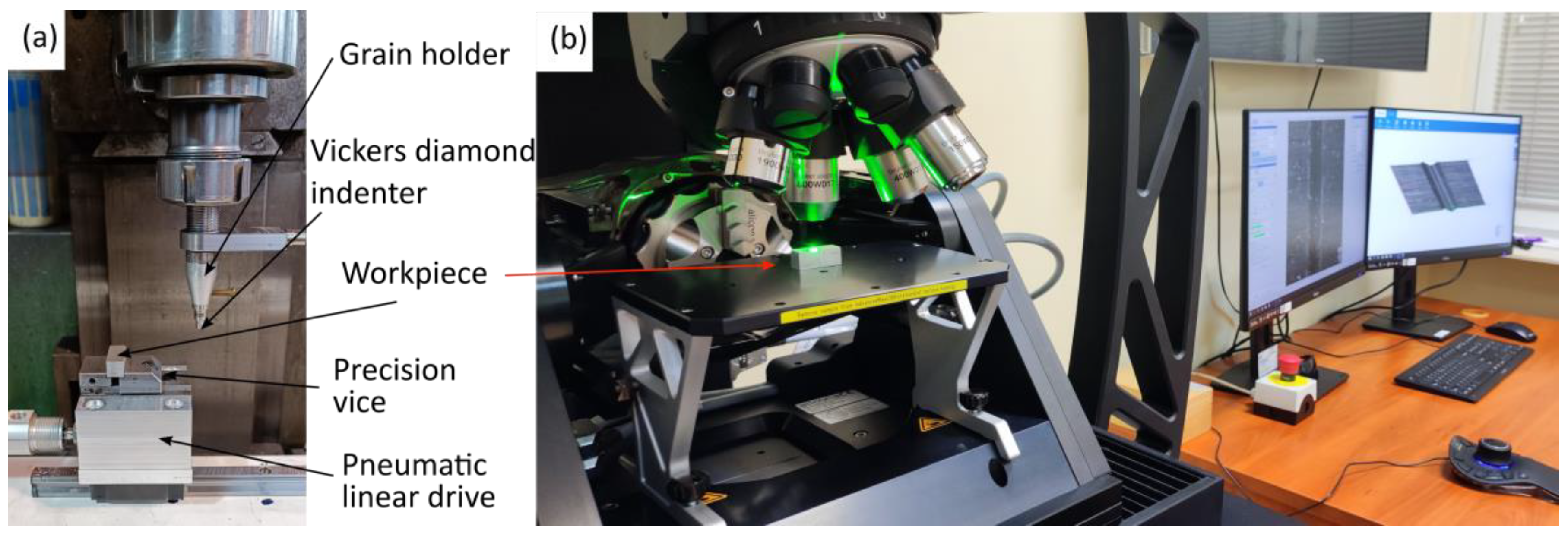 - Lipiński, D.; Rypina, Ł.; Banaszek, K.; Tomkowski, R. Experimental investigation and numerical analysis of material removal efficiency using abrasive microaggregates in grinding processes of Ti6Al4V. Precis. Eng. 2024, 91, 476–488. [Google Scholar] [CrossRef]