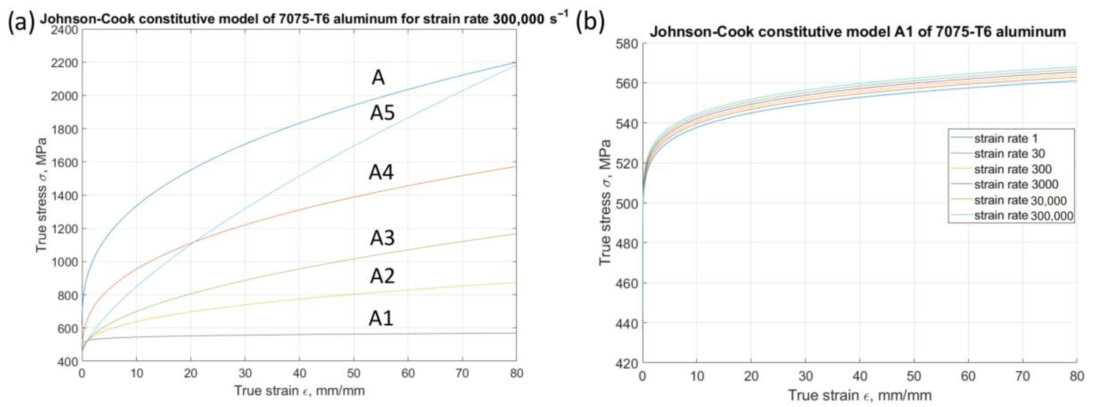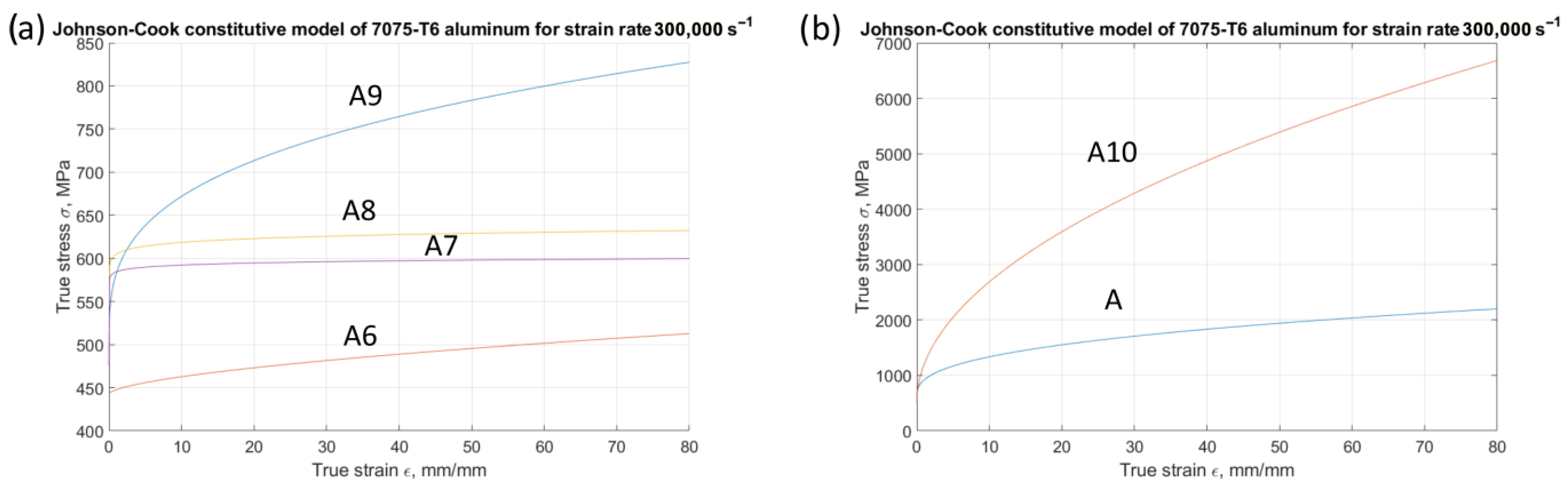 2.3. Simulation Assumptions and Selection Constants for the Johnson–Cook Model