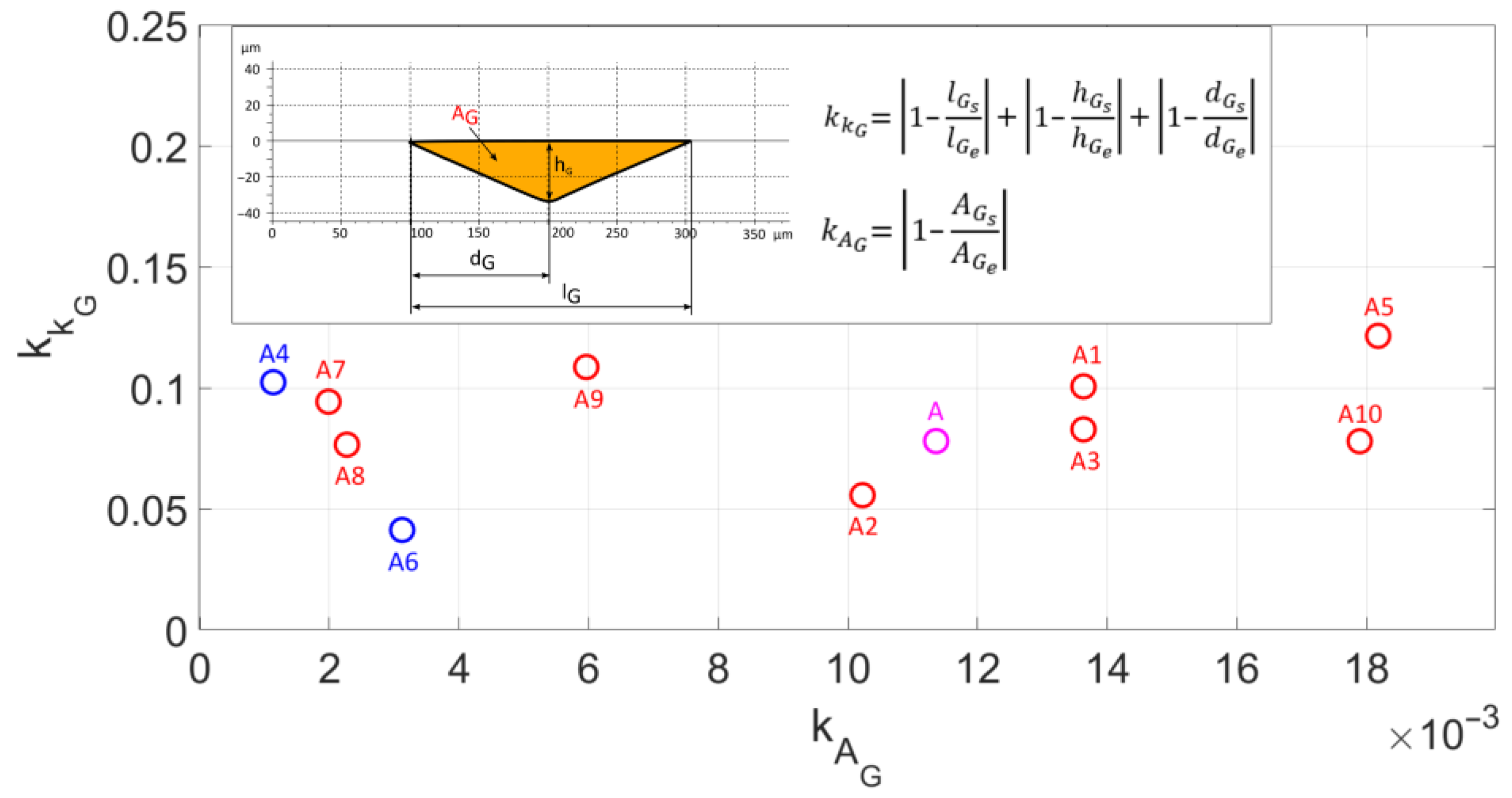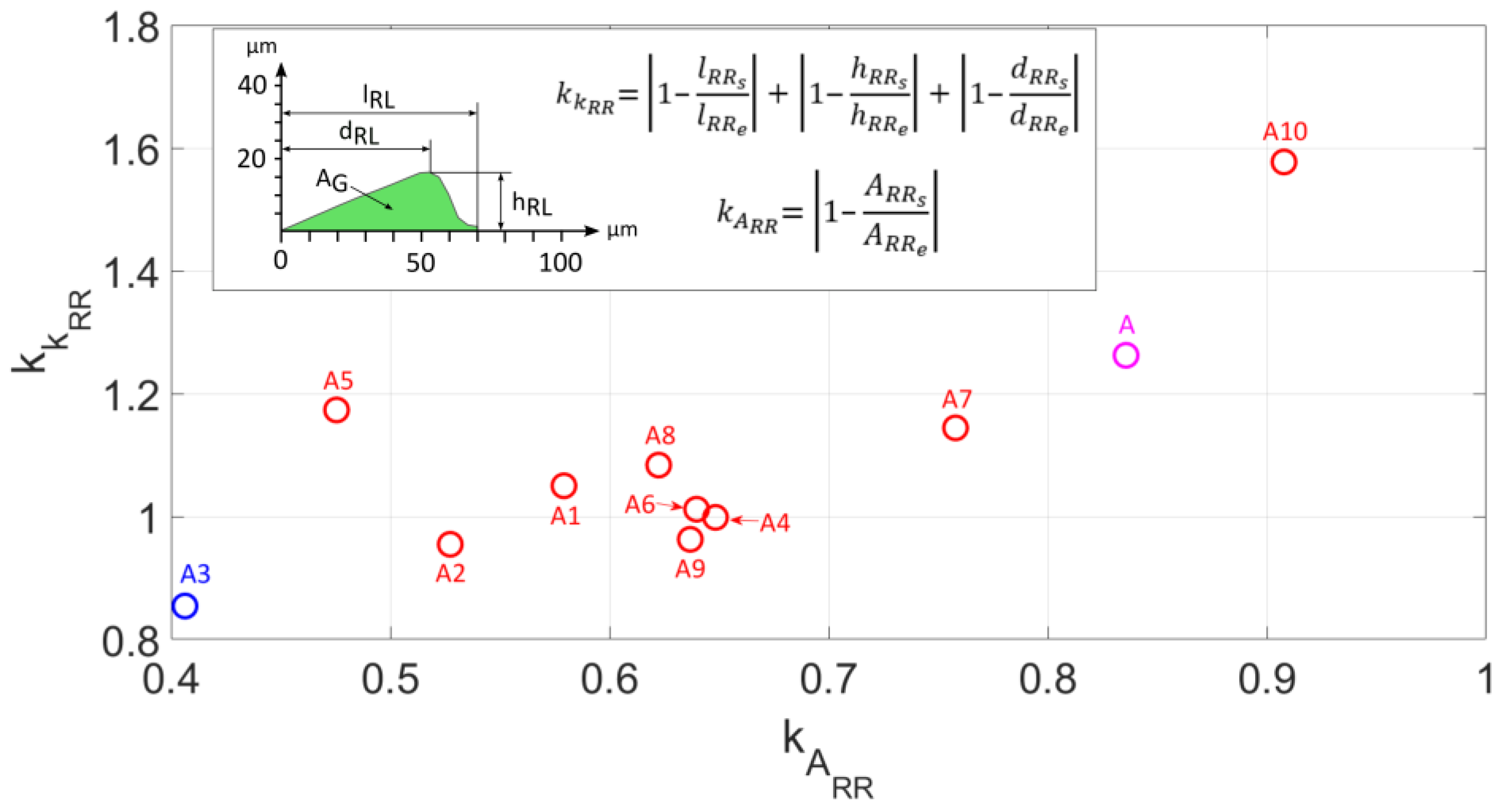 | No. | ARL [µm2] | lRL [µm] | dRL [µm] | hRL [µm] | ARR [µm2] | lRR [µm] | dRR [µm] | hRR [µm] | AG [µm2] | lG [µm] | hG [µm] | dG [µm] |