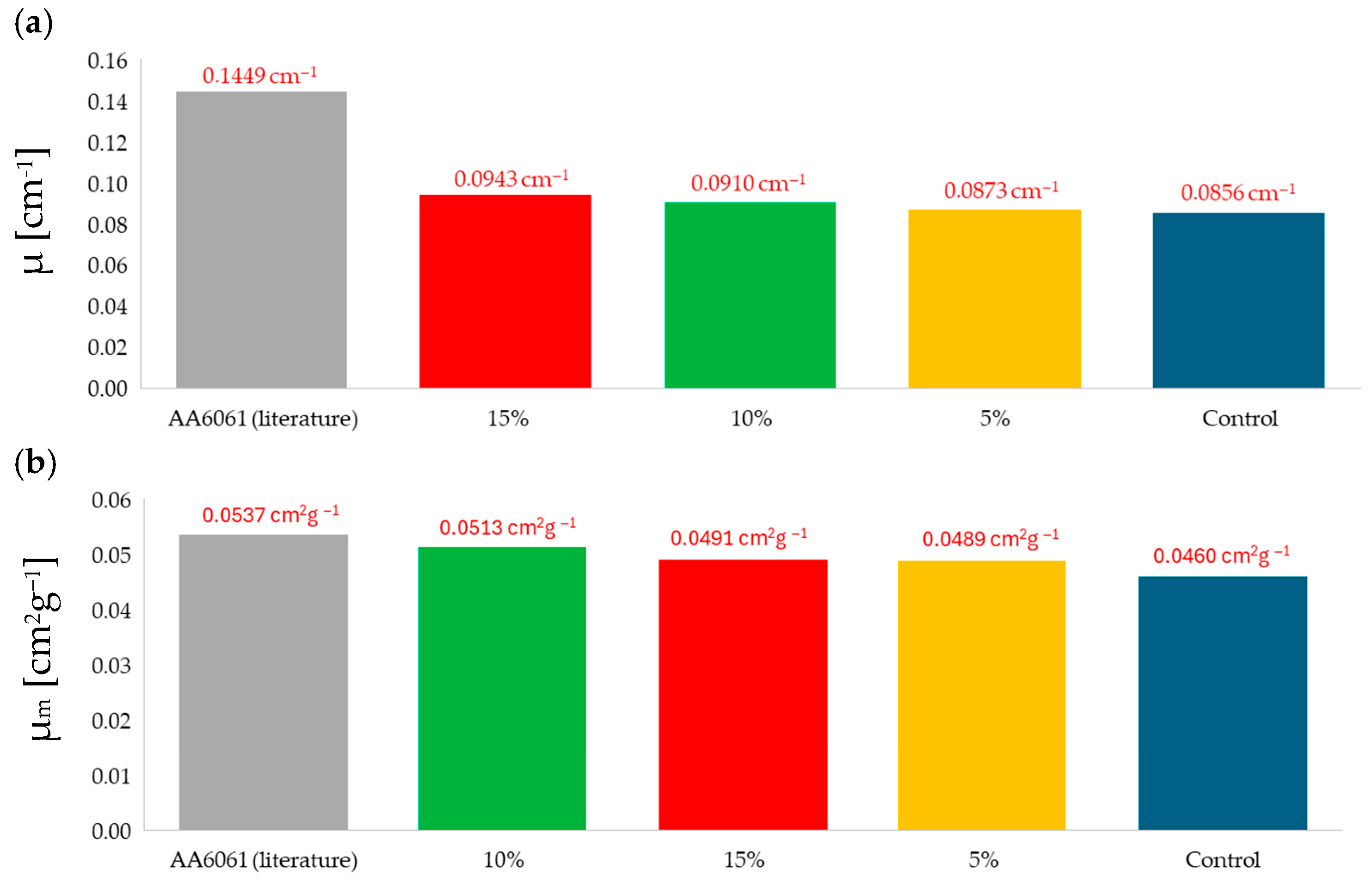 - Cengiz, G.B.; Çağlar, İ. Assessment of Mass Attenuation Coefficient, Effective Atomic Number and Electron Density of Some Aluminum Alloys. Cauc. J. Sci. 2020, 7, 109–122. [Google Scholar] [CrossRef]