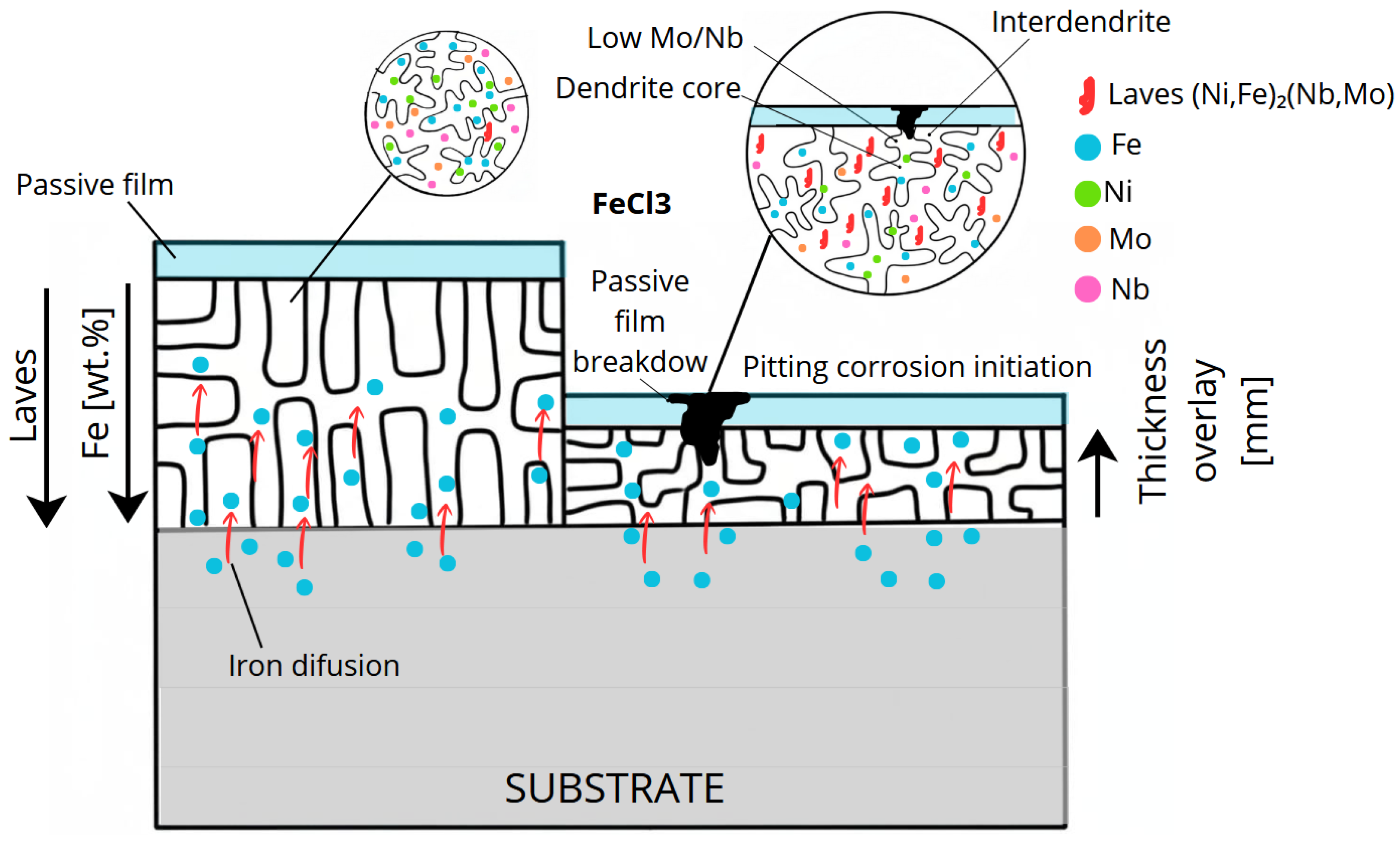 - Iron dilution modified the distribution of Ni, Cr, Mo, and Nb.