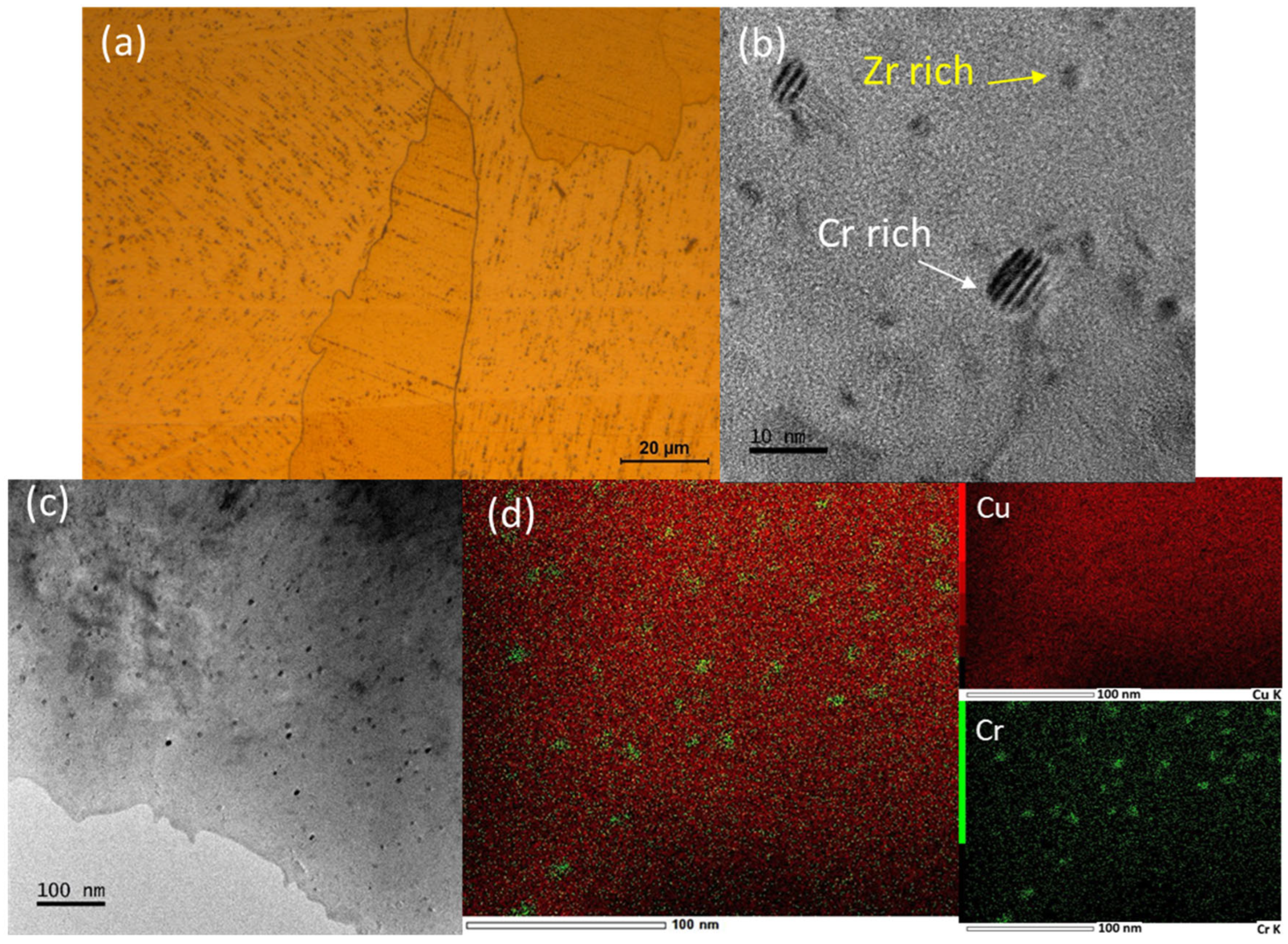 - Kulczyk, M.; Pachla, W.; Godek, J.; Smalc-Koziorowska, J.; Skiba, J.; Przybysz, S.; Wróblewska, M.; Przybysz, M. Improved compromise between the electrical conductivity and hardness of the thermo-mechanically treated CuCrZr alloy. Mater. Sci. Eng. A 2018, 724, 45–52. [Google Scholar] [CrossRef]