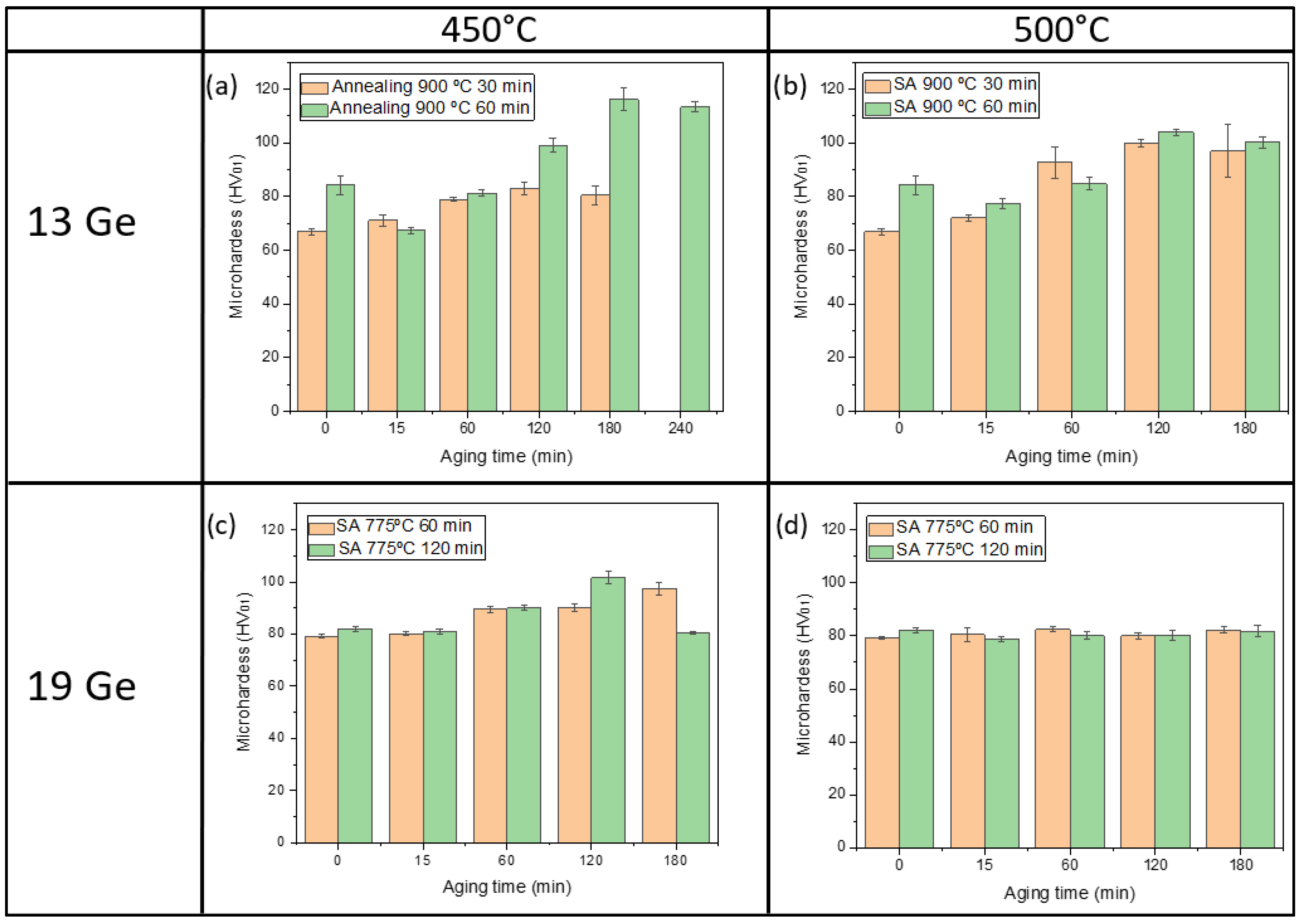 | Cu13Ge | 1030 | 10 | 900 | 30–60 | 450–500 | 15-60-120-180 |