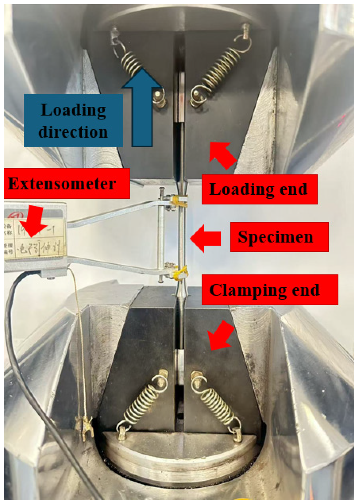 50]. Displacement was measured using a high-precision extensometer, with an accuracy class meeting ASTM E83 Class B-1 standards [