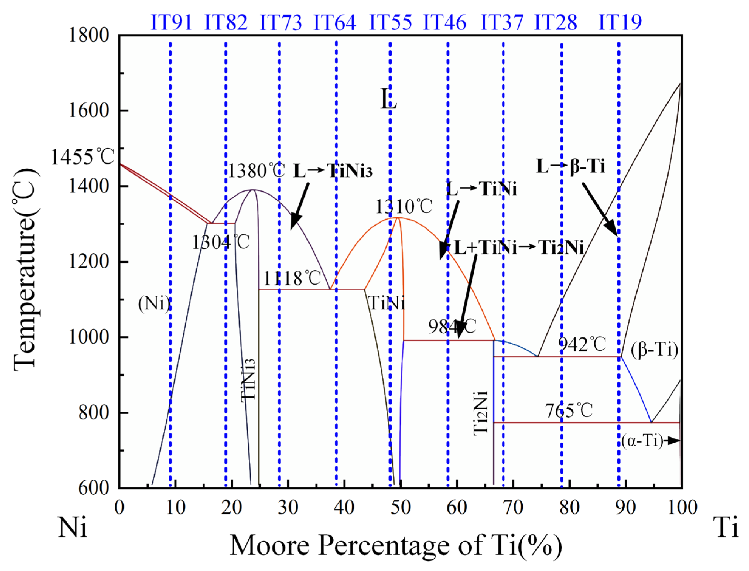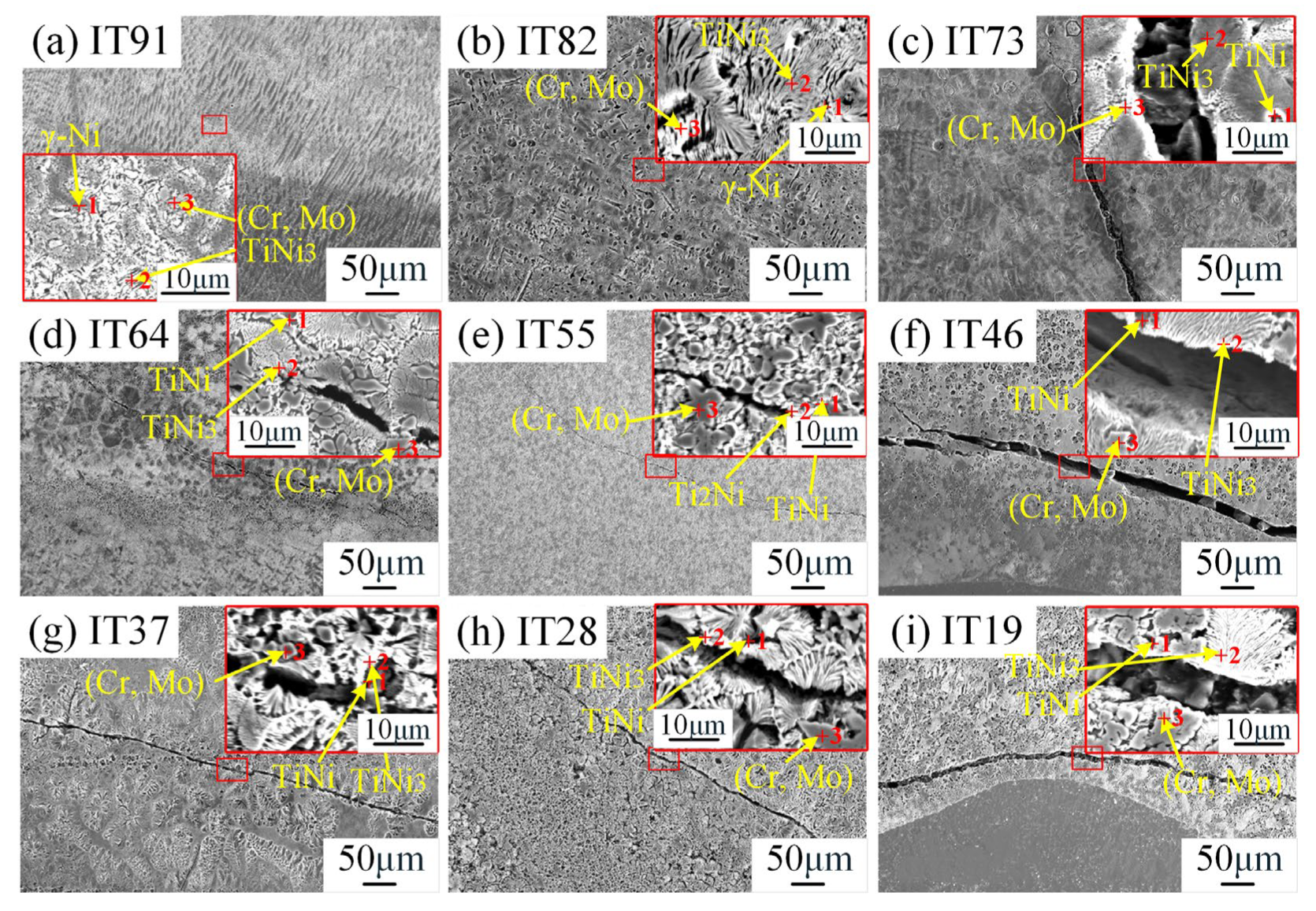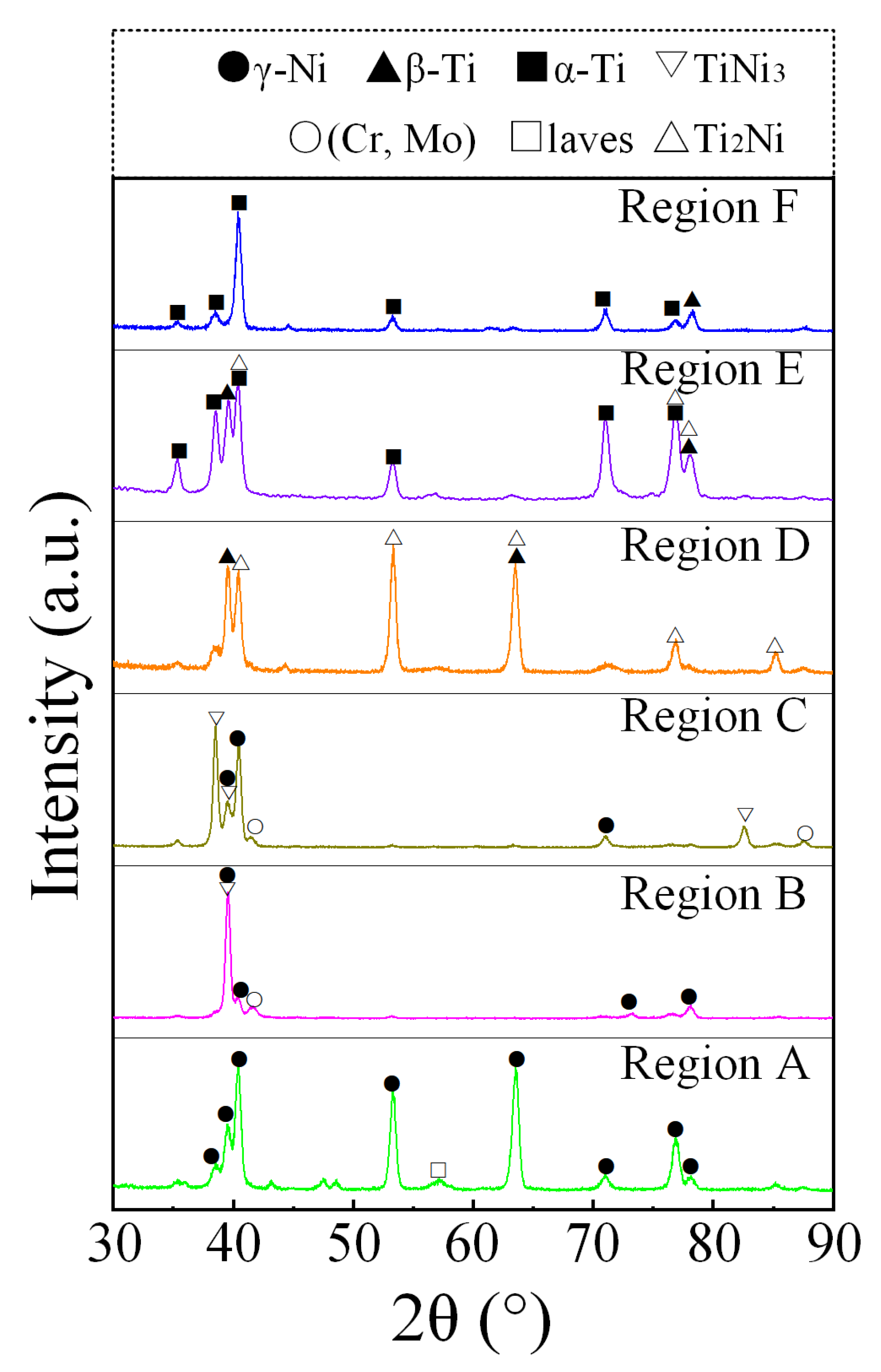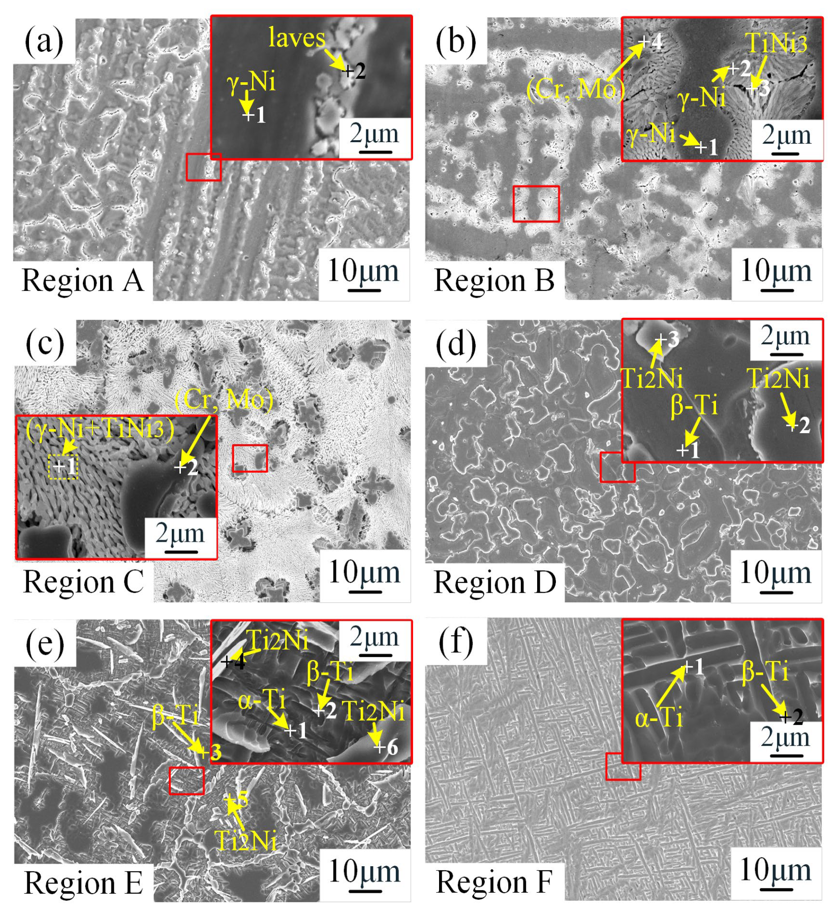 | γ-Ni | laves | (Cr, Mo) | TiNi3 | Ti2Ni | β-Ti | α-Ti | |