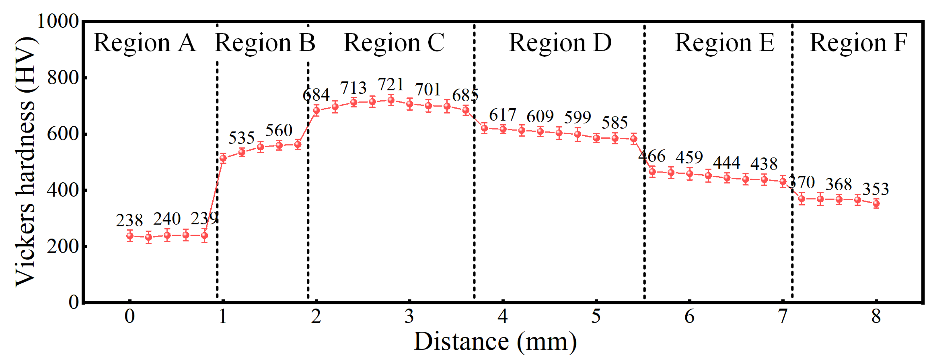 | Region F | f1 | - | - | - | - | - | 88.99 ± 2.44 | 8.76 ± 0.26 | 2.25 ± 0.04 | α-Ti |