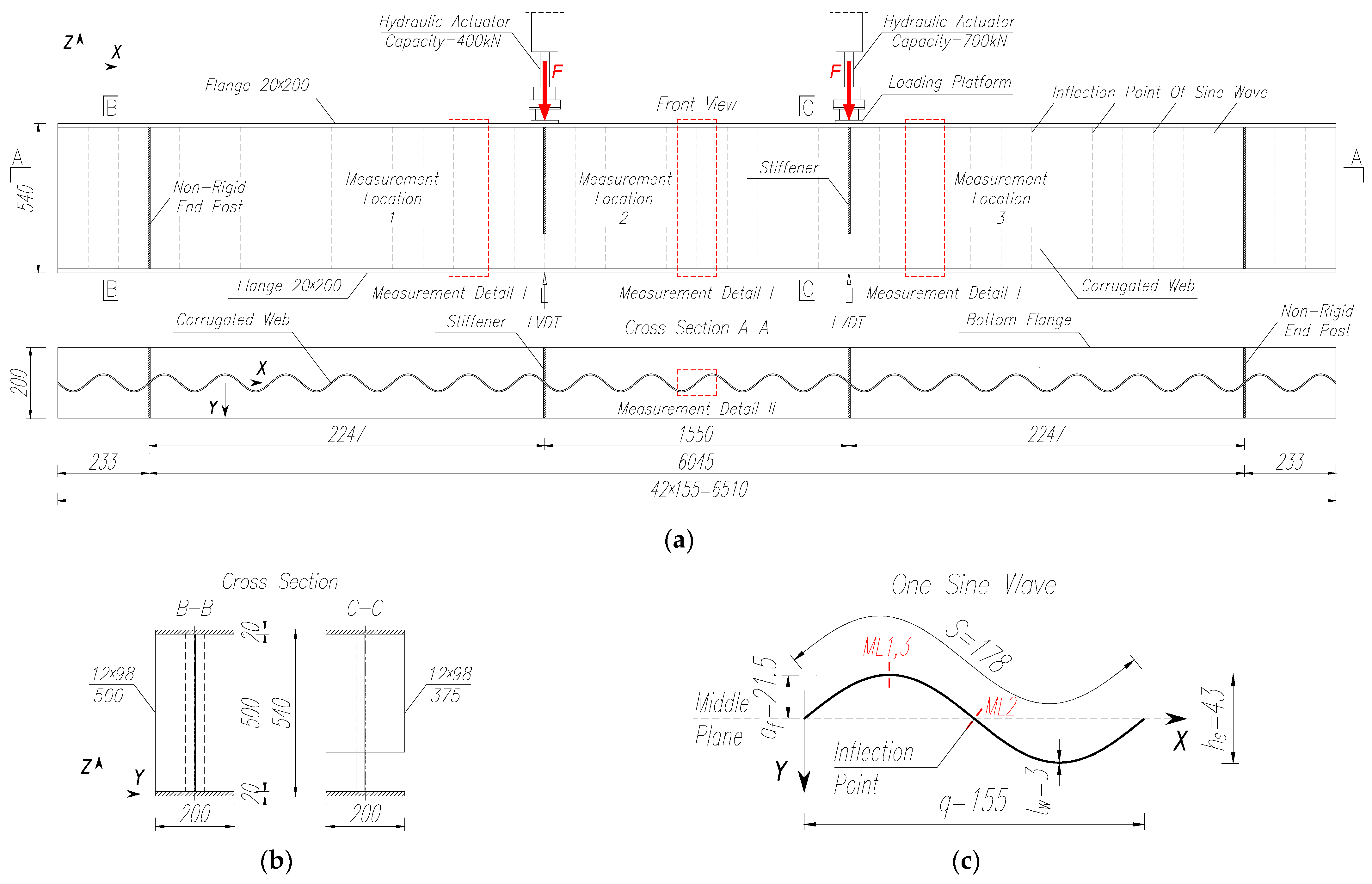 | Length | Calculated Length | Height | Flange | Corrugated Web | Wavelength | Wave Amplitude | Wave Height | Developed Wavelength |