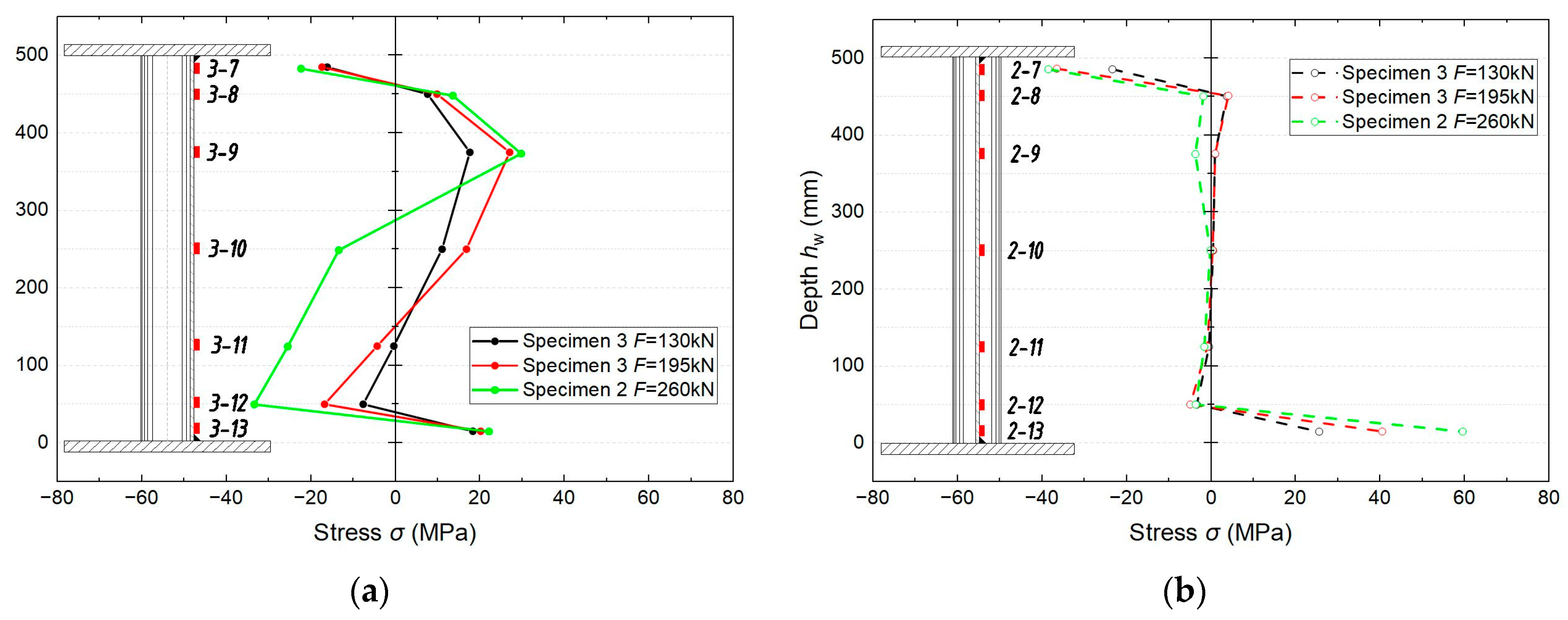- Zuo, G.; Tong, L.; Zhao, Z.; Wang, H.; Shi, W.; Yan, Y. SCF Formulae of Corrugated-Web Steel Girders: Experiments and Numerical Analysis. J. Constr. Steel Res. 2025, 228, 109445. [Google Scholar] [CrossRef]