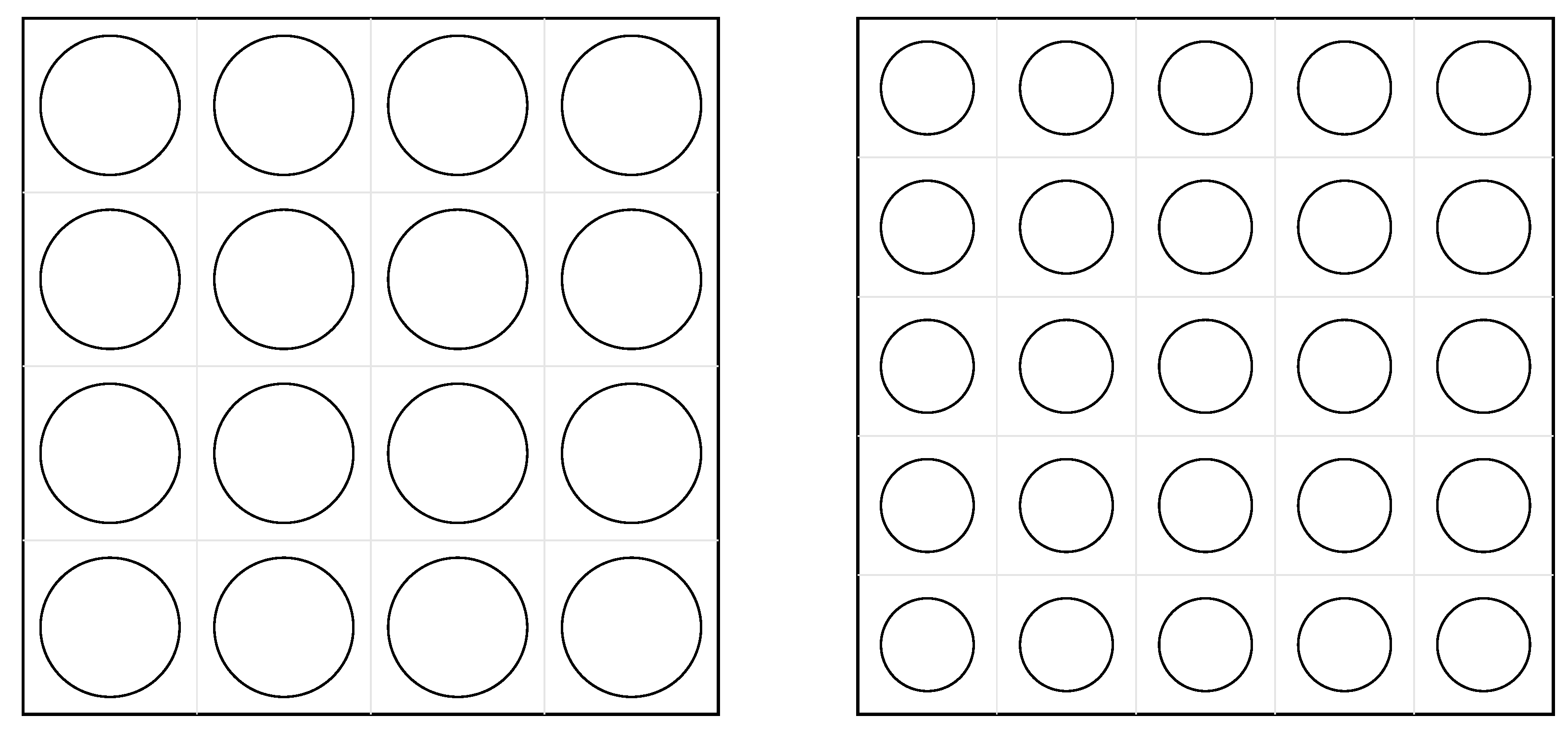 between adjacent holes and between edge holes and the plate boundary. With hole centers on a square grid of pitch