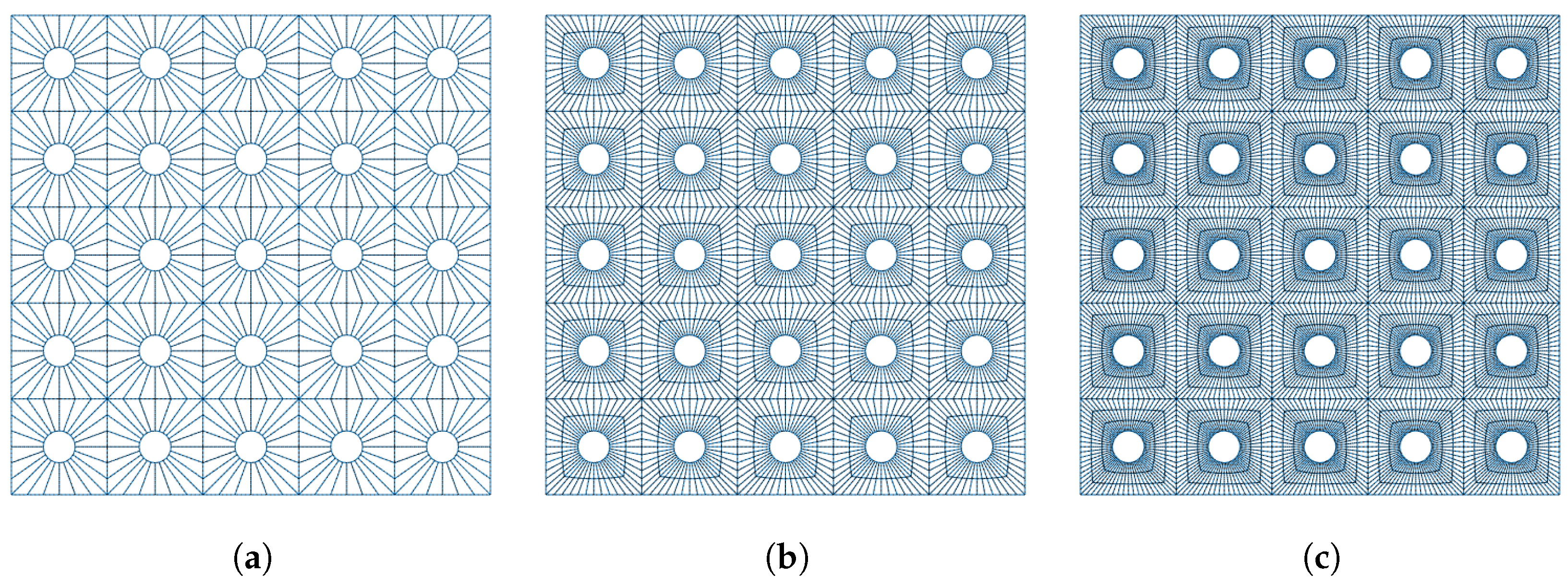 perforated reference plate. Three meshes were generated with increasing local refinement. Representative wireframe views of the three meshes are shown in