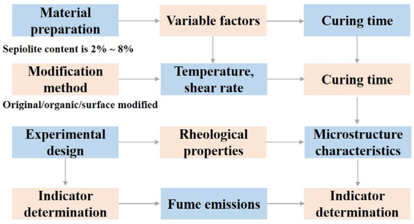 - Li, S.; Liu, Q.; Wang, H.; Wang, J.; He, L.; Wu, S. Effect of kaolin and sepiolite on fume emissions of rubber modified asphalt. Constr. Build. Mater. 2024, 416, 135276. [Google Scholar] [CrossRef]