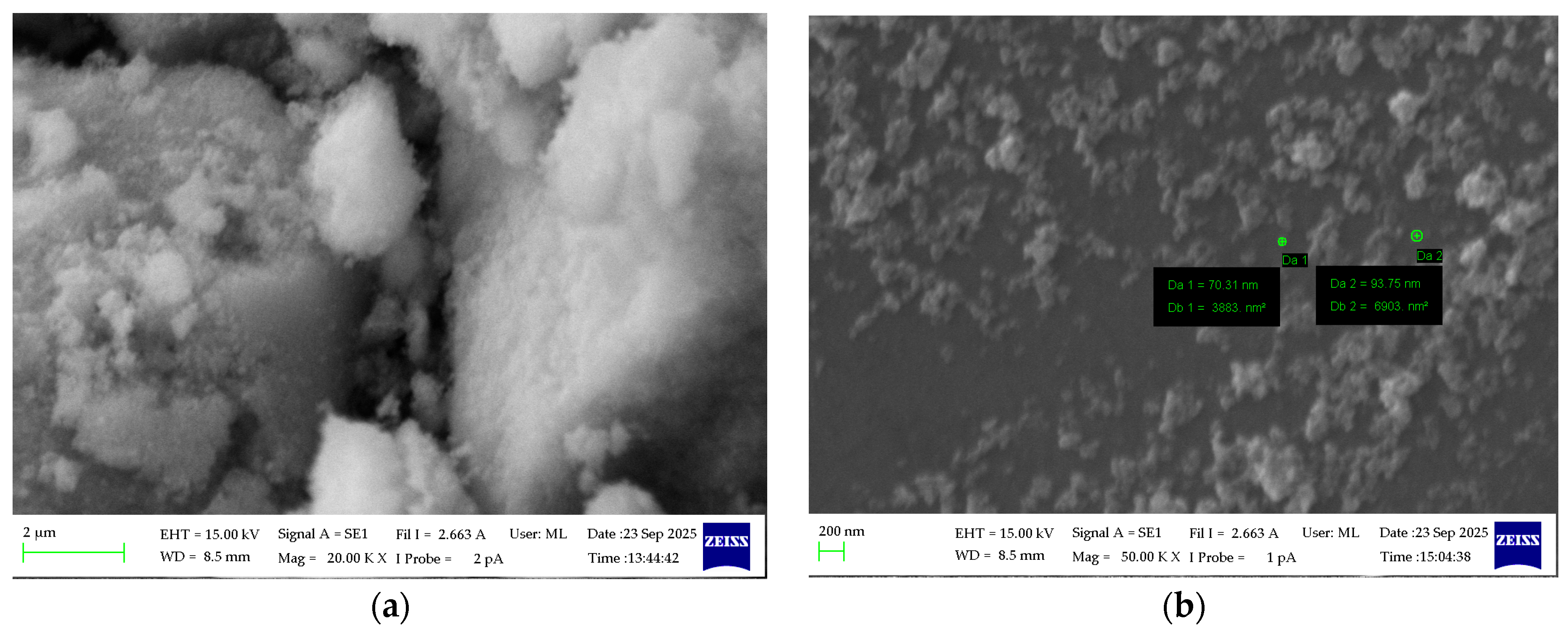2.4. Electron Microscopy Studies and Analysis of the Chemical Composition of the Obtained Material