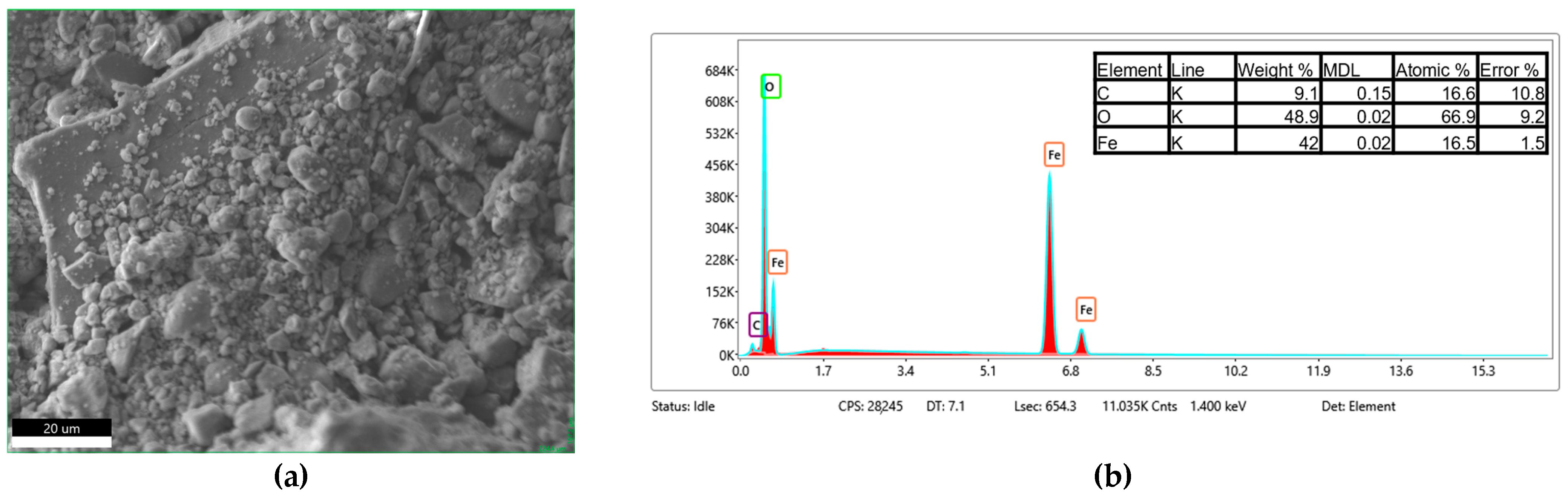 | Fe3O4/chitosan (100–300 cP) | 0.296 (pH = 8.81) | 0.474 (pH = 7.20) |