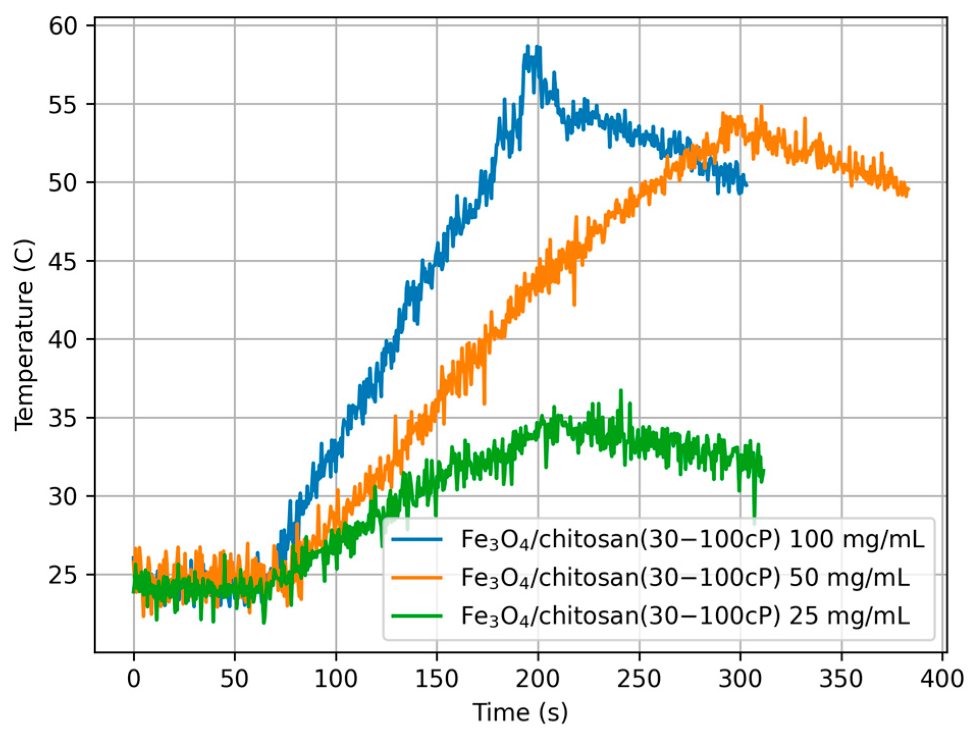 Wilczyńska, A.; Ruchomski, L.; Łakomski, M.; Góral-Kowalczyk, M.; Surowiec, Z.; Miaskowski, A. Chitosan-Coated Fe3O4 Nanoparticles for Magnetic Hyperthermia. Materials 2025, 18, 5629. https://doi.org/10.3390/ma18245629