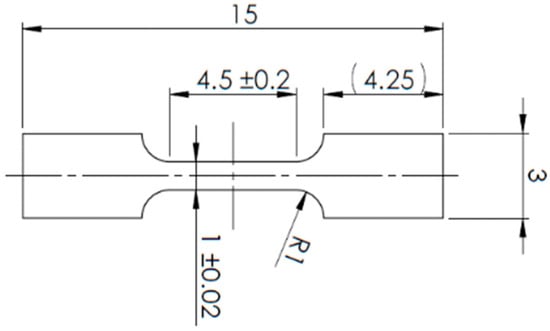Schematic illustration of the miniaturized tensile test specimen geometry.
