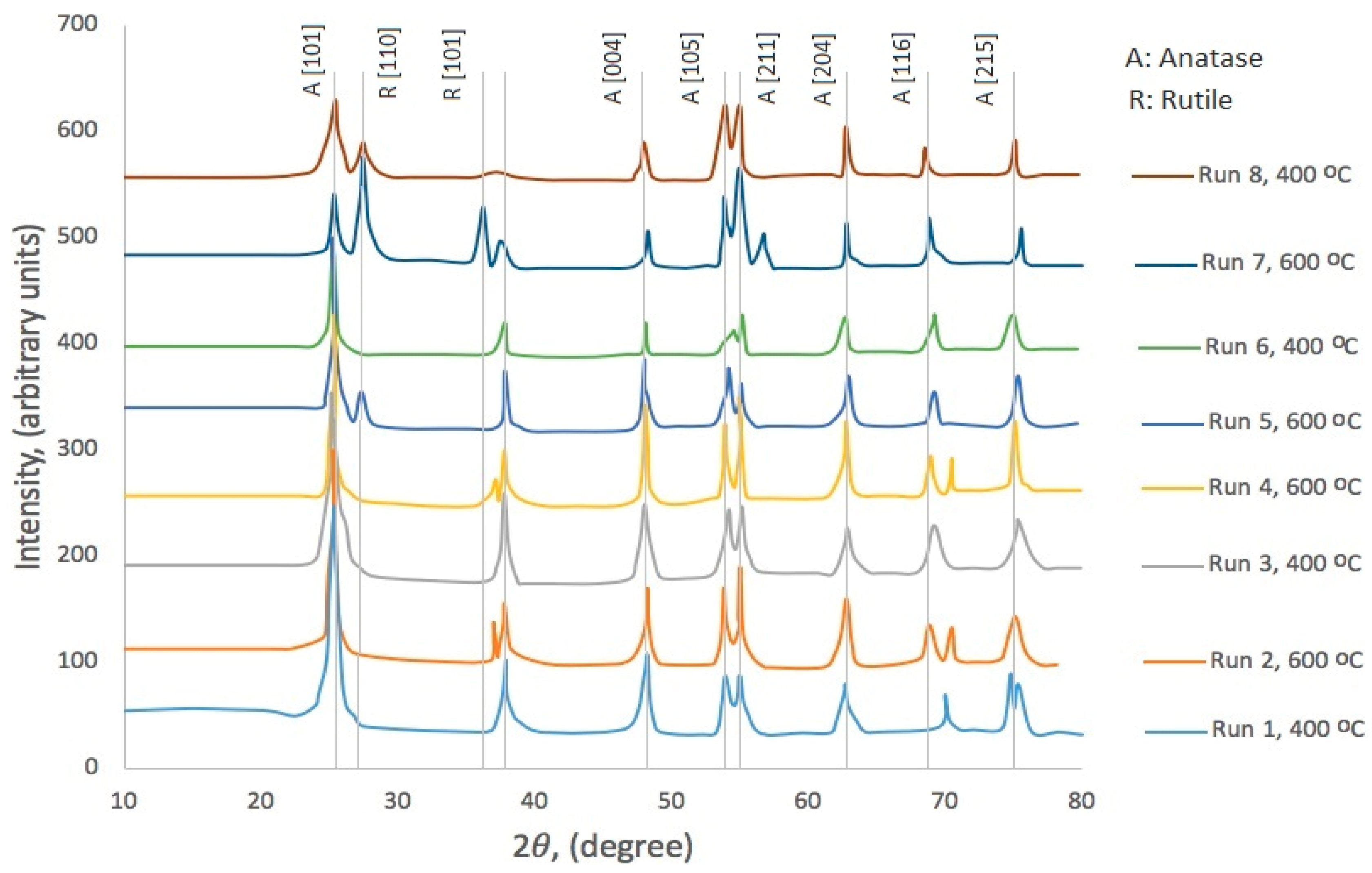 - Ibrahim, A.; Mekprasart, W.; Pecharapa, W. Anatase/rutile TiO2 composite prepared via sonochemical process and their photocatalytic activity. Mater. Today Proc. 2017, 4, 6159–6165. [Google Scholar] [CrossRef]