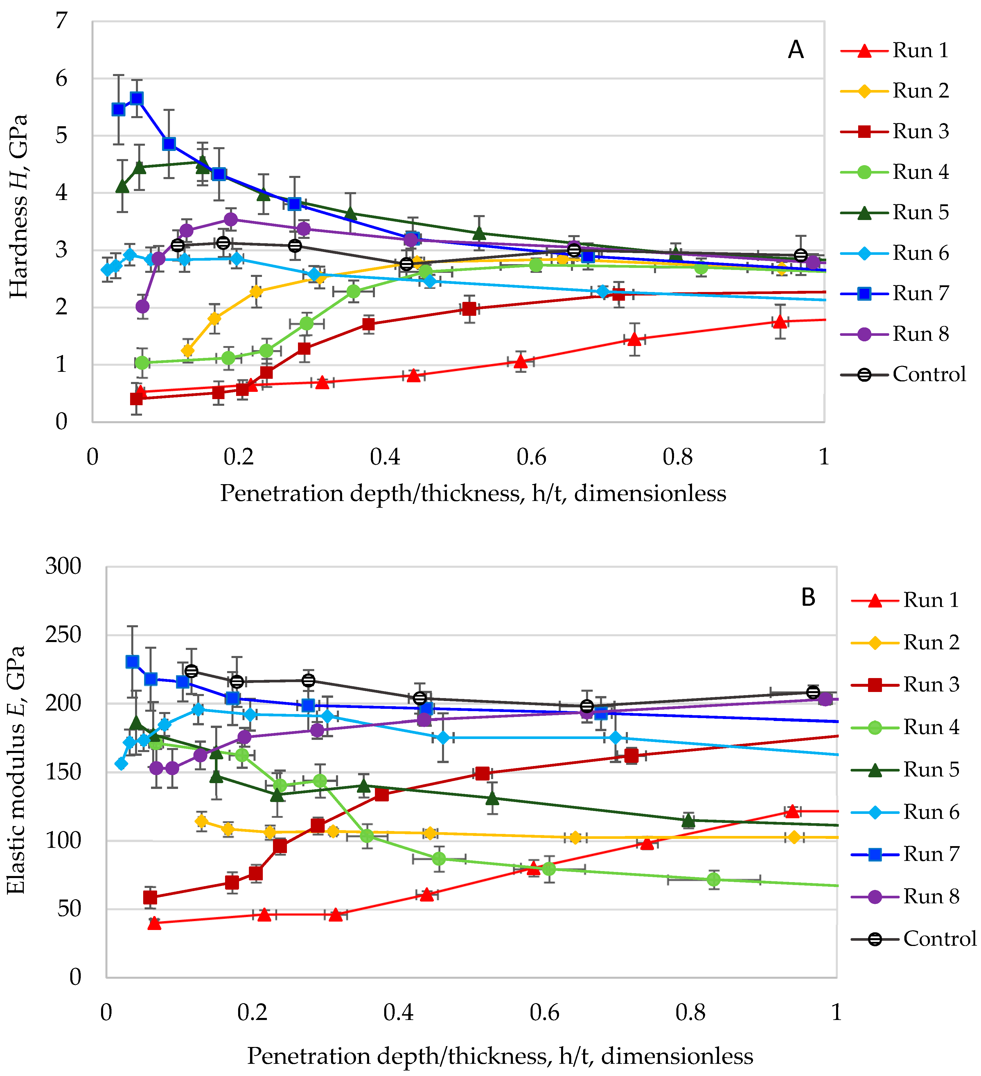 3.4.3. Hardness and Elastic Modulus
