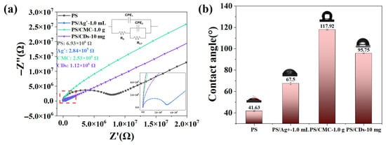 Figure 5a shows the ZView software (3.0a) fitting results of the PS films, PS/Ag