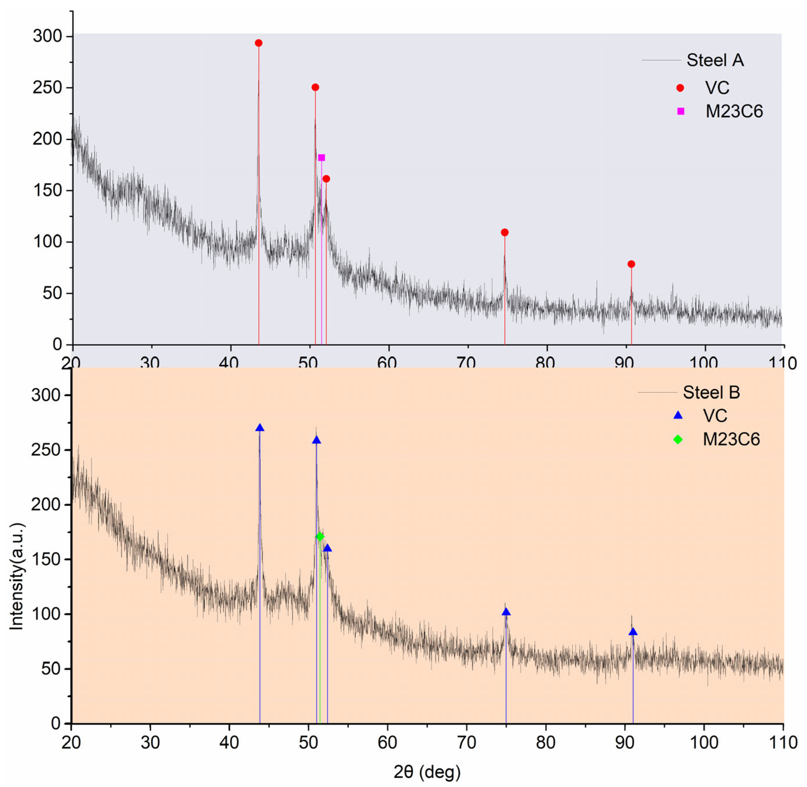 | Steel B | 0.38 | 1.09 | 0.38 | 0.005 | 0.0006 | 5.10 | 1.31 | 0.93 | 0.0100 | 0.0008 | 0.001 |