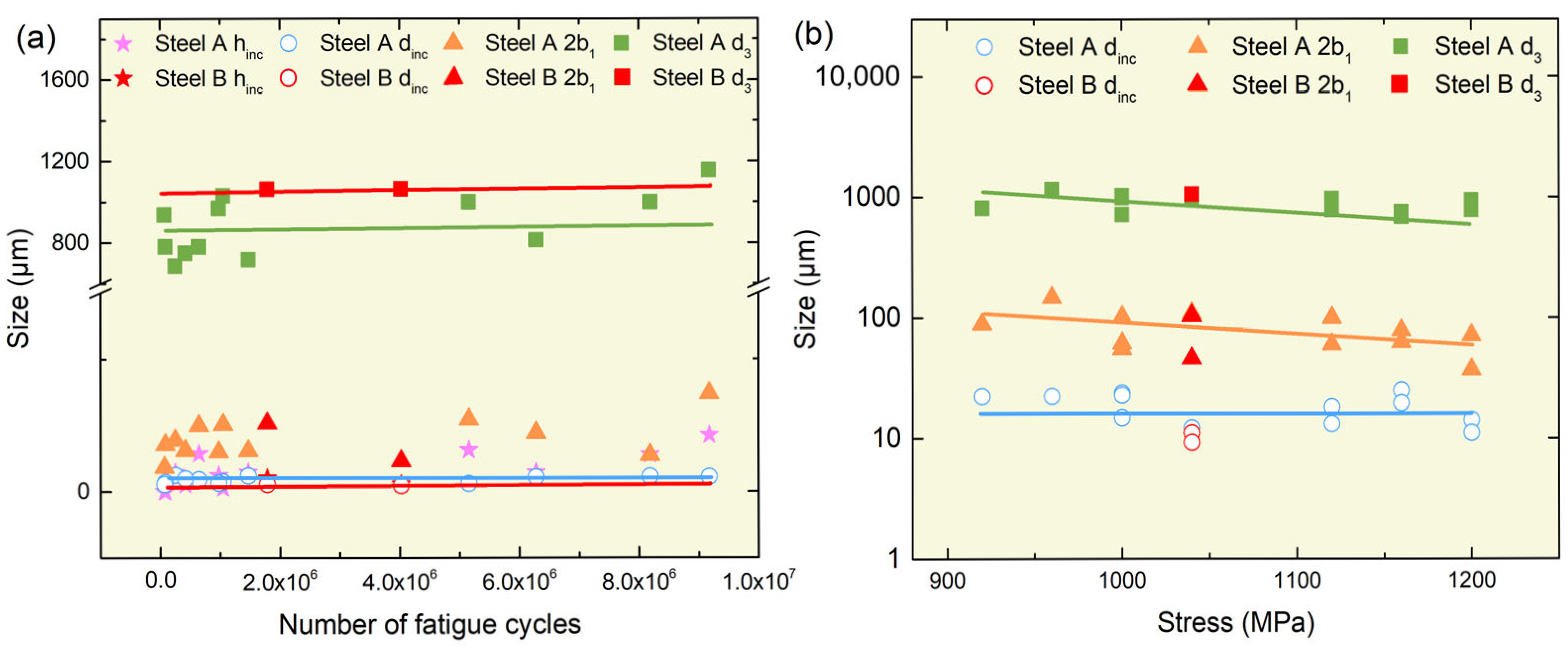 - Equations derived from the Paris law have been demonstrated to relate inclusion size to crack-tip stress intensity factor (KIC). The KIC of ESR steel is approximately 28 MPa·m0.5, whereas that of VIM+VAR steel is approximately 30 MPa·m0.5. It can explain the H13 steel fatigue fracture process. Moreover, the relationship between inclusion size, loading stress, and fatigue life is deduced. The formula is . It provides a basis for predicting the rotation bending fatigue life of H13 steel.