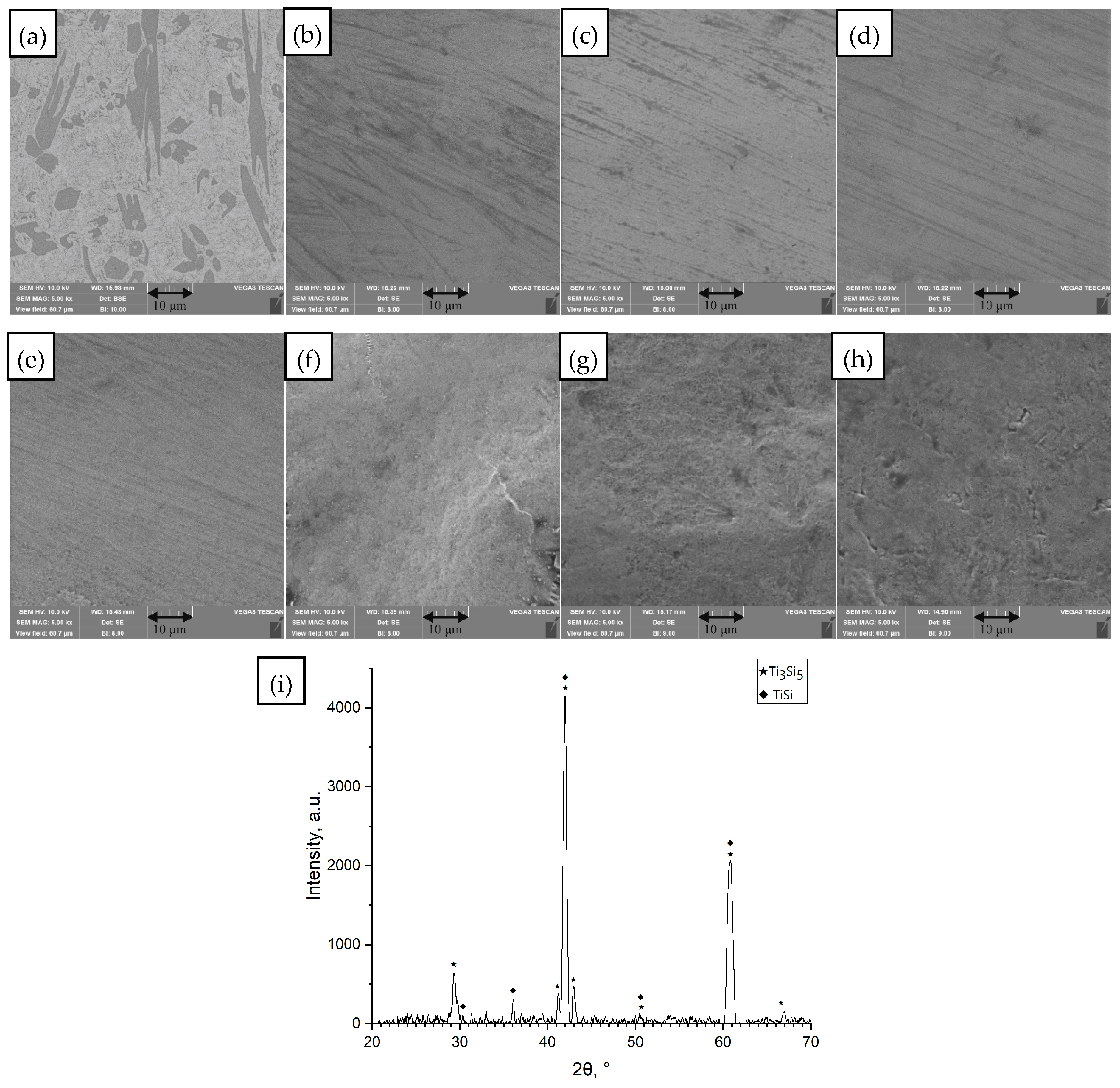- Nishio, T.; Kobayashi, K.; Matsumoto, A.; Ozaki, K. Preparation and Characterization of Nano-Crystalline Ti-2 at%Fe-10 at%Si Alloy by Mechanical Alloying and Pulsed Current Sintering Process. Mater. Trans. 2003, 44, 2262–2265. [Google Scholar] [CrossRef]
