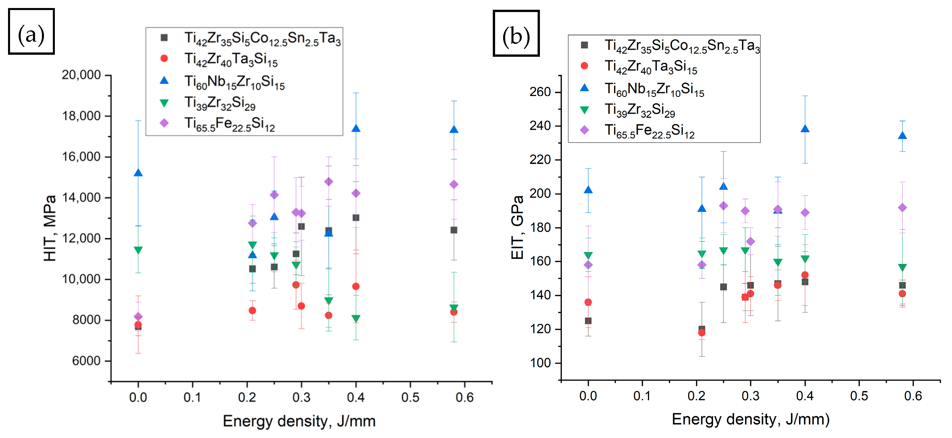 - Gabor, C.; Cristea, D.; Velicu, I.-L.; Bedo, T.; Gatto, A.; Bassoli, E.; Varga, B.; Pop, M.A.; Geanta, V.; Stefanoiu, R.; et al. Ti-Zr-Si-Nb Nanocrystalline Alloys and Metallic Glasses: Assessment on the Structural Development, Thermal Stability, Corrosion and Mechanical Properties. Materials 2019, 12, 1551. [Google Scholar] [CrossRef]