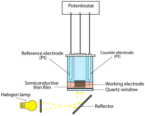 Schematic representation of the PEC used to study the thin semiconductive films’ photo-response.