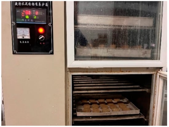 Maintenance parameters: It is expected that the compressive strength of modified sludge soil will increase with the increase in maintenance age. This experiment selected curing ages of 1 day, 3 days, 7 days, 14 days, and 28 days to study the strength development of specimens in the early, middle, and stable stages of curing. Considering that the hydration reaction has already started in the pretreatment, a curing period of 1 day has been added to study the formation of initial strength. The maintenance conditions are set as indoor standard maintenance, with a temperature of 20 °C and humidity controlled at 90 ± 5% RH, slightly lower than outdoor summer temperatures, to simulate the effects of humidity and temperature on later strength.