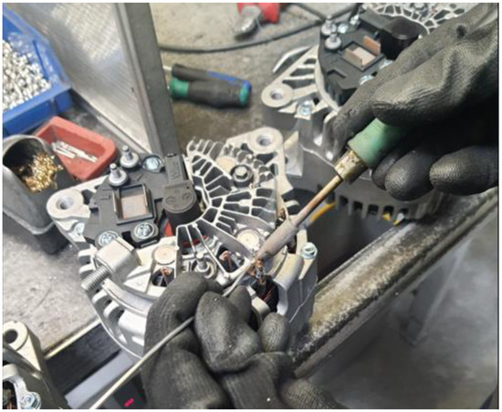 The last case analyzed during the tests was the crack of the copper wire outside the joint zone, which, on the one hand, indicates a decent quality of the solder joint, and, on the other hand, it indicates a material defect in the wire. In the force measurement, a value higher than the minimum was obtained. The presented investigation was carried out at room temperature. Future tests will include tests at elevated temperatures that correspond to the operating conditions of a car alternator. Thank you for your suggestion regarding the possibility of checking the behavior of the joint in the creep test. We will be interested in conducting research in this direction.