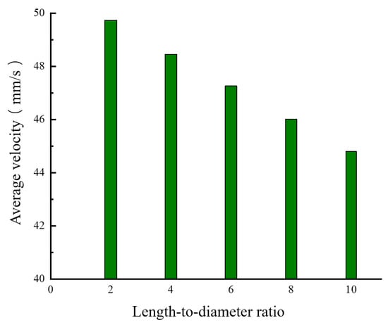 Histogram of the average velocity at the nozzle outlet cross-section under different length-to-diameter ratios.