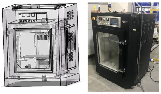Among the many 3D printing technologies, fused deposition modeling (FDM) is one of the most rapidly developed and widely used technologies which not only has the general advantages of 3D printing technologies, but also has its own advantages such as low equipment manufacturing cost, simple technical principles, and pollution-free green manufacturing [1,2]. At present, the materials widely used in the FDM process are basically low-melting polymers, such as polylactic acid (PLA), acrylonitrile–butadiene–styrene (ABS), polycarbonate (PC), paraffin, etc. [3,4,5]. In recent years, special engineering plastics have been favored in the biomedical, aerospace, and defense industries and in automobile manufacturing due to their unique comprehensive properties, such as polyether ether ketone (PEEK), polyetherimide (PEI), and polyphenylene sulfide (PPS), which can work for a long time in harsh environments [6,7,8,9]. With the rapid development of science and technology, people have more complex, lightweight, and integrated requirements for the workpiece structure made of high-performance materials, and the traditional polymer processing technology cannot meet the current production requirements. FDM 3D printing technology provides a solution to this by virtue of its own characteristics, but the FDM 3D printing machines on the market are mainly suitable for the traditional low-melting-point polymer materials, and the research on the molding equipment for special engineering plastics with a high melting point and a large expansion coefficient is in the development stage. The study of the performance of the equipment and the molding process still needs to be deepened. Therefore, based on the existing FDM technology, this paper develops a high-temperature FDM 3D printing device with independent intellectual property rights, a high cost–performance ratio, and high reliability. This device can not only print high-performance special engineering plastics (such as PEEK, PEI, PPSU, etc.), but also takes into account the commonly used materials on the market (such as PLA, ABS, PC, etc.).