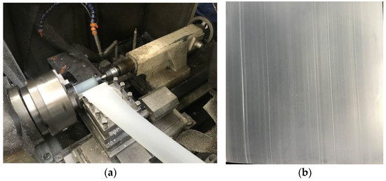 Ring-cutting process of XLPE cable: (a) the ring-cutting process; (b) XLPE samples.