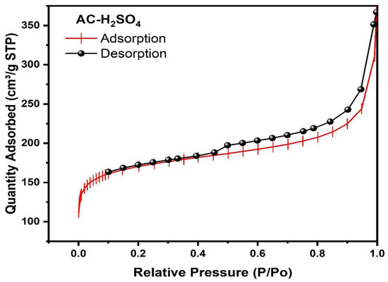 Nitrogen adsorption–desorption isotherm of AC-H2SO4 sample.