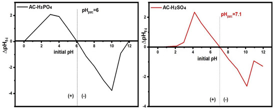 pHpzc graphical presentation of AC-H3PO4 and AC-H2SO4 samples.
