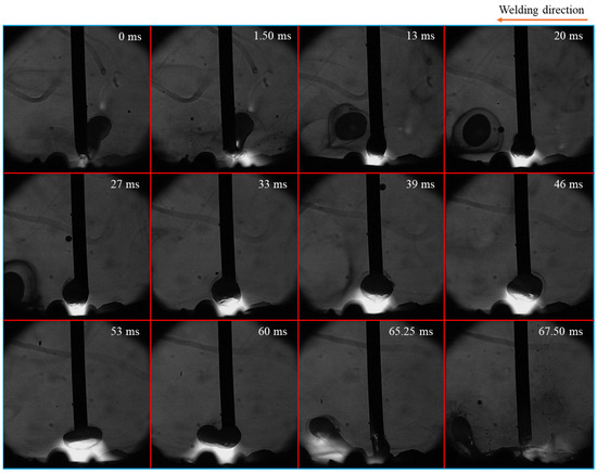 Figure 7 illustrates the time-sequential images of spatter formation in conventional CO2 arc welding. It indicated that spatter formation and the motion of the long tail were positively correlated. Spatter formation occurred in two stages: at the moment of droplet detachment and seconds after that due to the movement of the tail.