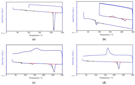 The degree of crystallinity χc was calculated by standardizing the melt enthalpy to the standard melt enthalpy ΔHm,0, as shown by Equation (1):