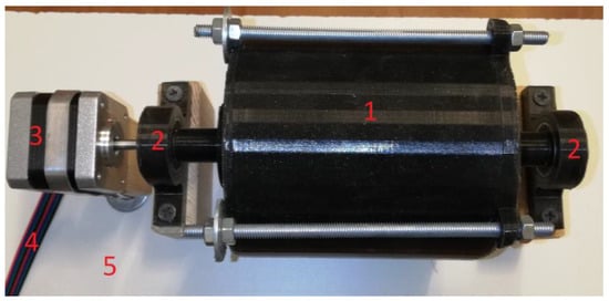 Component mixing device: 1—mixing tube, 2—bearing, 3—stepper motor, 4—connector, and 5—base.
