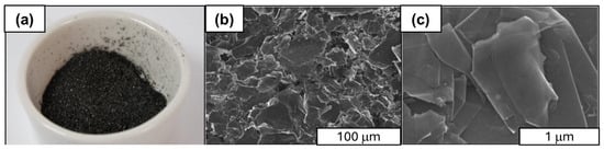 Flake graphene (FLG) and spherical aluminum powder were utilized in the synthesis process of the composites. The form of graphene used for the synthesis of aluminum graphene is presented in Figure 1.