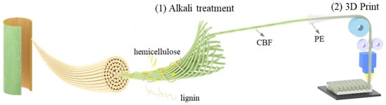 Schematic figure of CBF/PE composite using the proposed alkali treatment combined with 3D printing method.