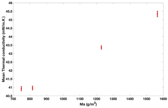 | Sample | Mean Ma (g/m2) | SD * Ma (g/m2) | Mean TH (mm) | SD * TH (mm) | Density (kg/m3) |