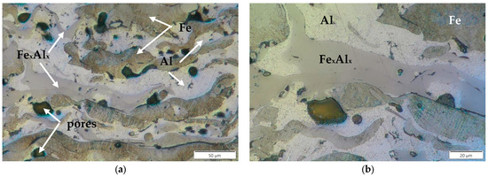 Iron aluminide intermetallic compounds are generating growing interest due to their unique properties, including excellent mechanical properties, low density, outstanding resistance to corrosion and oxidation, resistance to sulfidation and carburization, and wear resistance even at elevated temperatures and low cost [1,2,3]. Due to these attractive properties, intermetallic phases from the Fe-Al system can replace stainless steels operating at elevated temperatures and, in particular, in harmful environments [3]. Moreover, previous studies have shown that the brittleness and low plasticity of these intermetallic phases can be significantly improved by the addition of Cr [4], heat treatment [5], grain refinement, or oxide dispersion strengthening [6]. Since the surface layer of machine parts is particularly exposed to mechanical loads, wear, and aggressive environments, FeAl phases are often used as protective coatings on critical parts and devices [4]. Coatings with a Fe-Al intermetallic phase structure are applied to components such as power boiler elements, hot sections of gas turbine engines, hot-gas filters, heat exchangers, recuperators, and combustor components in engines [2,4,7].