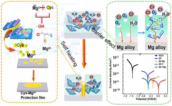 - Wang, Z.; Fang, L.; Wu, F.; Ruan, H.; Tang, Y.; Hu, J.; Zeng, X.; Zhang, S.; Luo, H. Anti-corrosion, self-healing and environmental-friendly Ti3C2Tx/MgAl-LDH@epoxy composite organic coating for Mg alloy protection. J. Mater. Sci. 2023, 58, 3283–3306. [Google Scholar] [CrossRef]
