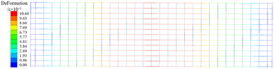 By comparing and analyzing the short-term stiffness results of DB-1, DB-2, DB-3, and DB-4 before cracking calculated by Equation (15), based on the short-term stiffness of DB-1, the influence rate of three structural forms on the short-term stiffness of the floor is analyzed. The lack of a flange plate greatly influences the short-term stiffness of the bottom plate, and the influence rate is 87.6%. The inverted truss binding will slightly reduce the short-term stiffness of the bottom plate, and the influence rate is −1.5%. The short-term stiffness is greatly improved by adding ribs, and the influence rate is 37.5%. Therefore, support-free construction can be realized by rationally designing the flange truss high ductility concrete composite slab floor. Through the influence rate of different structures on cracking bending moment and short-term stiffness before cracking, for the composite slab floor proposed in this paper, the flange truss composite rib should be selected in the design, and the rib should be tied in an inverted ‘V’ shape. When the actual construction is carried out, if the construction live load or the dead weight of the post-pouring layer increases slightly compared with the load combination value specified in this paper, the performance of the bottom plate can be increased by increasing the width or thickness of the flange plate; if the load combination value is much larger than that specified in this paper, the bottom plate design should be carried out by adding a combined rib plate.