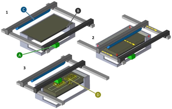 Figure 4. In the first step, a layer of sand approximately 250 μm thick is applied, which is then printed with binder in the second step [