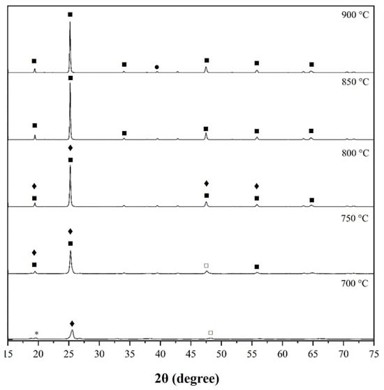 | Temperature (°C) | Content (%) | Crystalline Phase | ICSD Charts | GOF |