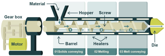 Figure 6. The main stages affecting the functioning of an extruder, adapted from [188].