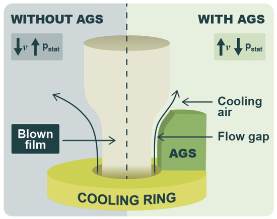 Figure 7. Air guiding system (AGS) to enable higher heat removal out of the film bubble by the venturi effect, adapted from [192].