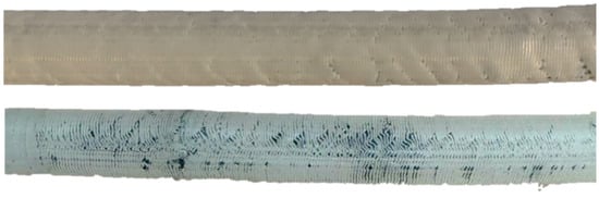 It was observed that the type of porosity changed after HE compared to the printed samples. In the pristine PLA samples, the open pores, initially perpendicular to the main axis, transformed into closed pores. Moreover, these pores became twisted and were no longer perpendicular to the main axis.