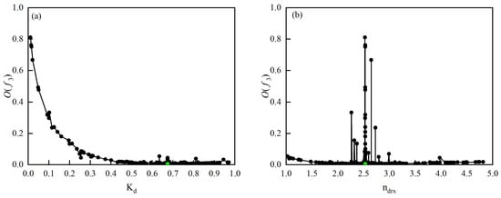 In the formulas: represents the percentage obtained from experiments; represents the percentage calculated by the model; and p are the average values of and , respectively; i denotes the ith data point; n is the total number of data points.